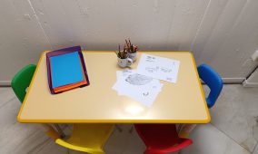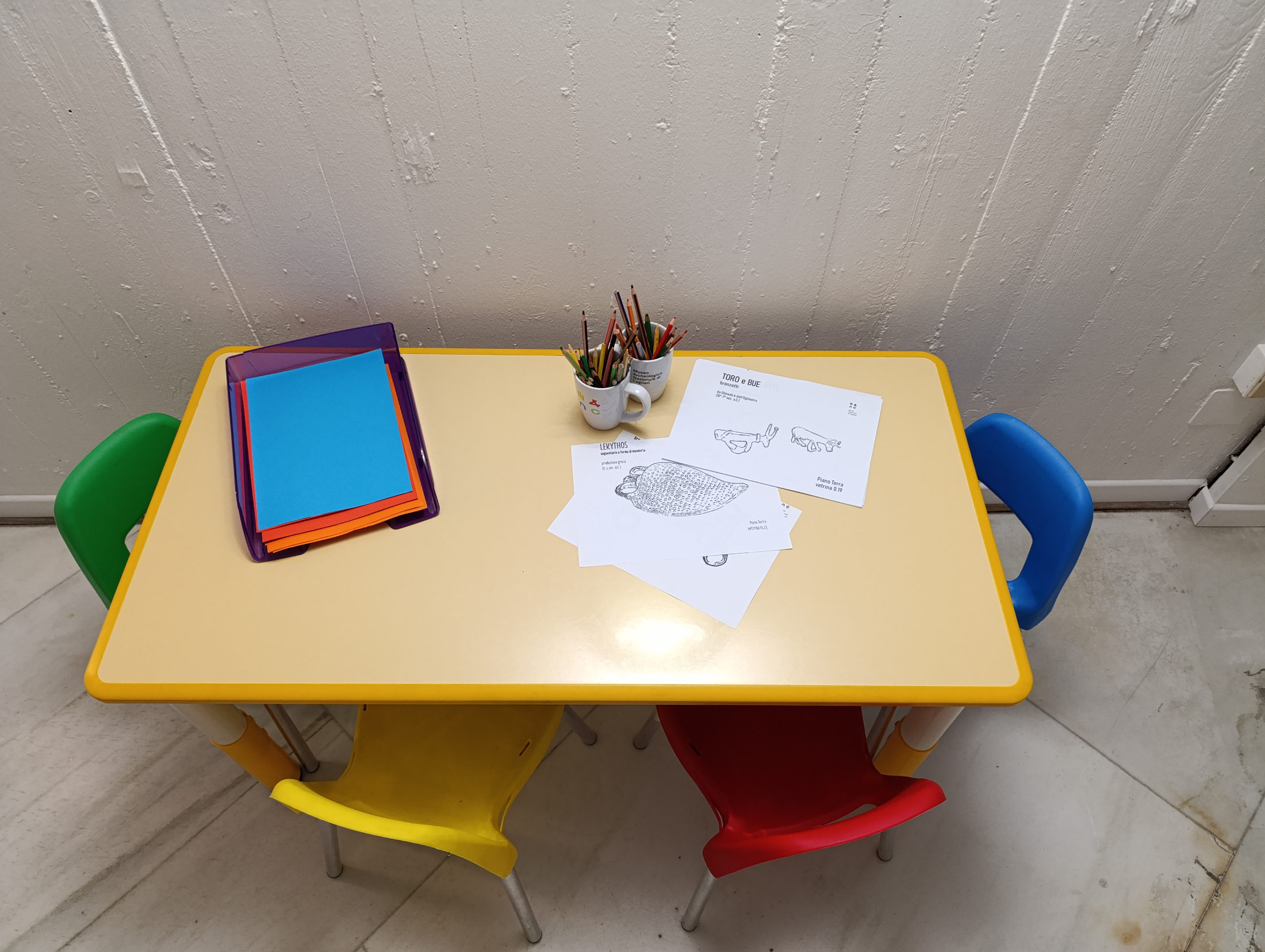 Presto la saletta sarà ancora più accogliente, con colori vivaci alle pareti, un mobile con elementi a nido d’ape e tanti libri per bambini a tema arte e archeologia!