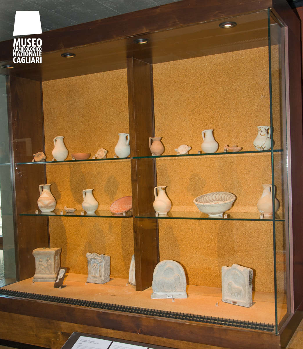 Sono anche presenti vasi in ceramica cosiddetta “fiammata”, una produzione locale sulcitana che si distribuisce abbondantemente nella Sardegna costiera meridionale e in misura più ridotta nella parte settentrionale dell’isola.