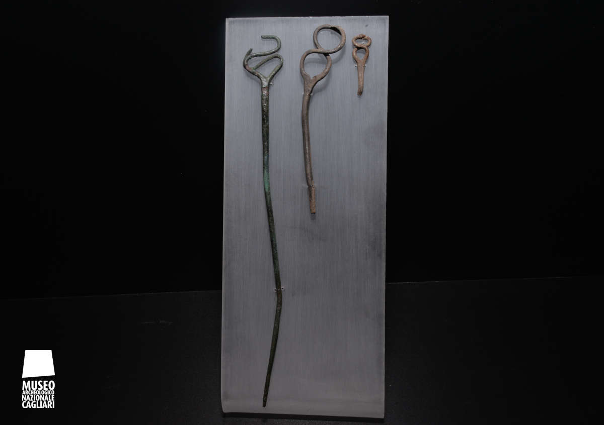 Among the objects found there are parts of marble statues, bone figurines, sometimes embellished with golden ornaments, parts of figures in painted clay, hands in bronze, plumed headdresses, numerous amulets, caduceus in silver, leaves in gold and silver, coins and votive inscriptions that show the name of the main divinity: Sid, a complex figure of a hunter and healer god, who is also given the attribute of Babai, perhaps with the meaning of “father”. Other deities attested in the dedications are Melqart, probably assimilated to Sid, Horon and Shadafra, healing deities and the goddess Elat, perhaps to be identified as the Greek Demeter.